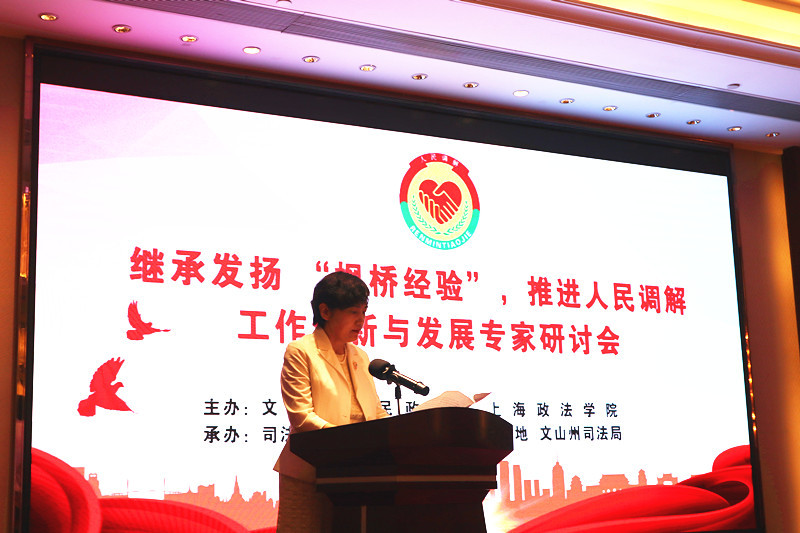 5月29日上午,新利18官方客服与文山州人民政府共同举办的“继承发扬‘枫桥经验’,推动人民调解工作创新与发展专家研讨会”在文山州举行。文山州副州长李新和新利18官方客服校长刘晓红出席并致辞。我校发规处处长石其宝、教务处处长袁胜育,文山州政法委、法院、检察院、司法局、各基层司法行政部门的代表参加。法律学院(调解学院)院长、司法部调解理论研究与人才培训基地执行主任兼秘书长侯怀霞,调解基地副主任张进德、副主任张西恒、秘书孙哲作主题发言。文山州政府办公室副主任刘嘉俊主持会议。