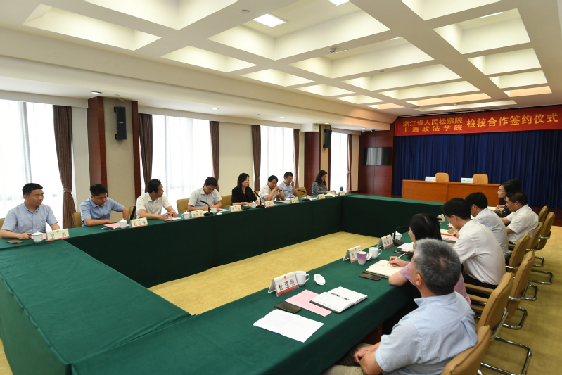 浙江省人民检察院党组书记、检察长贾宇,院党组成员、政治部主任胡梅奎,我校党委常委、副校长姚建龙出席签约仪式。胡梅奎主持仪式并与姚建龙在双方共同见证下签约共建。