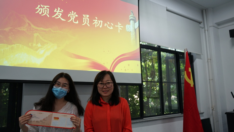 周欣为全体毕业生党员颁发党员初心卡,李洋带领全体党员重温了入党誓词。