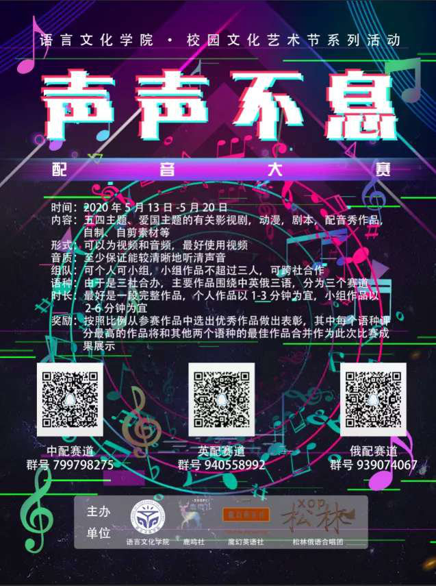 “声声不息”鹿鸣社、魔幻英语社、松林俄语合唱团合办配音比赛