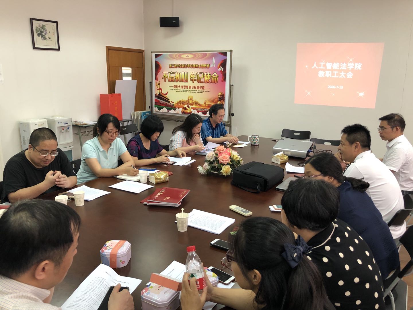 7月13日,人工智能法学院在主教209C召开教职工大会,会议由院工会主席张顺芳主持。