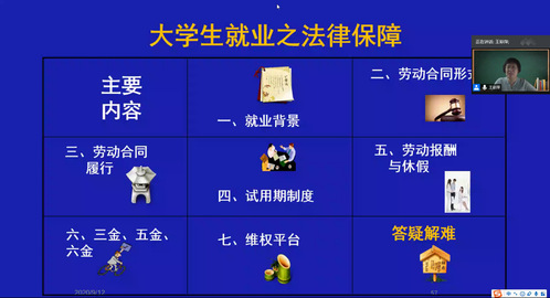 9月12日下午,法律学院在线举办第74期卓越法律论坛——“大学毕业生就业中的法律保障”,上海城建职业学院王彩萍副教授受邀作讲座。法律学院院长侯怀霞教授主持本次论坛,法律学院党总支副书记陆嵬担任与谈人,我校师生和来自校外的听众约150人在线聆听讲座。