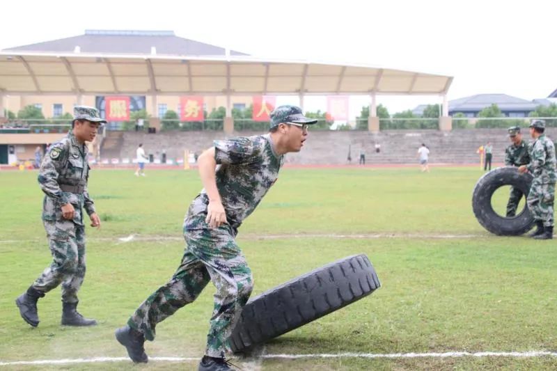 在最后的总结会上,由各位教官、教师及各班导生组成的小队在军事八项上一展风采。