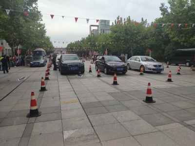 今年因防疫要求,保卫处提前在庸夫广场设置四个新生报到车辆引导缓冲区,引导开车送新生报到的家庭前往缓冲区报到,卸载行李。对于行李较多的新生,保卫处也安排校卫队员以及平安志愿者帮忙搬运。
