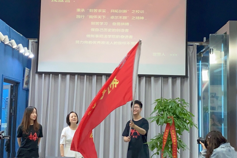 最后,胡冠时向2020级新生代表授旗,希望新同学不忘初心,牢记使命,为刑司的院旗增光添彩。新同学们在刑事司法学院学生会主席钱孜恩的带领下集体宣誓,表达了他们秉承传统,刻苦学习,奋勇拼搏的决心。