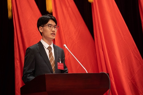 校团委书记蒋存耀代表学校团委肯定了第七届学生会在参与校园治理、繁荣校园文化、服务同学发展、维护同学权益等方面取得的工作成果。他希望上政青年学子坚定理想信念,做胸怀家国的新青年;主动奋斗作为,做敢于担当的新青年;锤炼过硬本领,做知行合一的新青年。