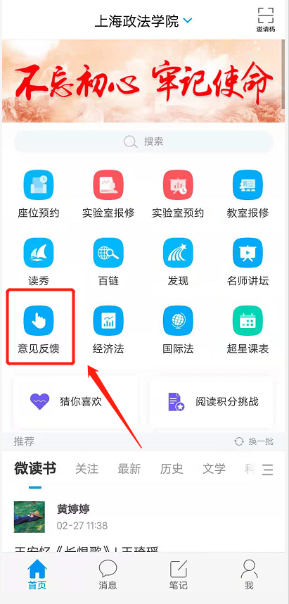 为搭建图书馆与我校师生之间的沟通渠道,使图书馆能及时倾听读者的心声,现在学习通APP上开通“意见反馈”专栏,我校师生对图书馆的服务或发展有任何建议或意见皆可反馈,具体操作如下: