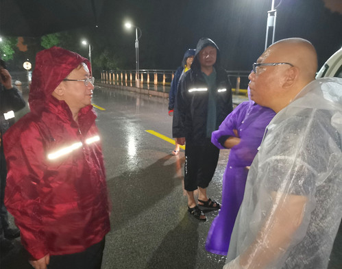 受台风“烟花”影响,上海近日遭遇强降雨。7月26日晚,学校河道水位短时间内快速上涨,部分路段和建筑物内出现严重积水,在校师生安全受到一定威胁。为确保校园和师生安全,深夜时分,校党委书记夏小和、校党委副书记刘刚带队巡查校园,现场指导开展防汛防台工作。