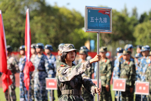 参训学生代表对辛勤付出的教官和老师表示感谢,他们倡议全体同学以这次军训为起点,在今后的学习生活中,提高素养、勤学善思、学以致用,以青春之我、奋斗之我,为祖国发展贡献力量。