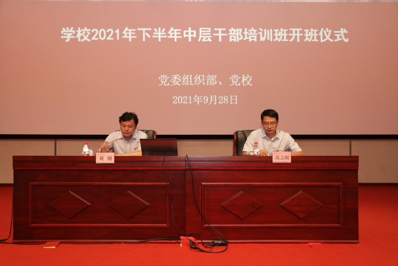 9月28日下午,学校2021年下半年中层干部培训班在上合基地207会议室开班。校党委副书记刘刚出席开班仪式并作动员,全体中层干部参加。开班仪式由党委常委、宣传部部长、党办校办主任高志刚主持。