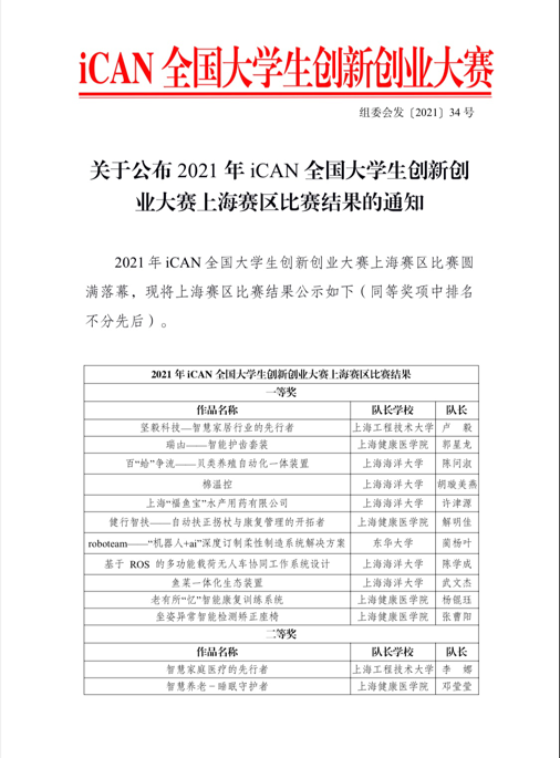 我校彭俊豪团队获iCAN全国大学生创新创业大赛上海赛区三等奖