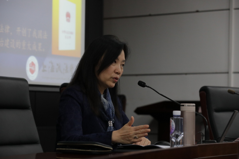 讲座中,刘晓红对习近平法治思想的深刻内涵进行阐述,指出习近平法治思想是一个内涵丰富、论述深刻、逻辑严密、系统完备的科学理论体系,是马克思主义法治理论中国化的最新成果,是习近平新时代中国特色社会主义思想的重要组成部分,是全面依法治国的根本遵循和行动指南。随后,刘晓红围绕改革开放以来我国法治建设的简要回顾、改革开放以来涉外法治体系的建设与发展、涉外人才培养为涉外法治建设提供有力保障三个方面开展授课,并对改革开放以来的法治建设及涉外法治体系建设与发展历程进行清晰的梳理,结合具有代表性的重要案例进行深入分析。