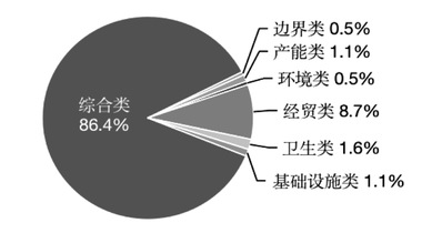 除了对总体数量变化的统计外,笔者进一步根据上述软法文件所涉领域,将其划分为图2所示的7种类型。由此观之,我国对外签署的软法规则主要以综合类为主,凸显出政府主导的软法创制的核心特点在于综合性。同时,由于“一带一路”建设侧重于经贸领域的合作,因此在特定领域的软法创制中经贸类占比最大,并且其他类型的软法诸如产能、交通及基础设施等也都是围绕经贸类展开的。