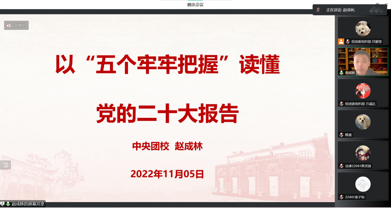 11月5日上午,新利18官方客服团学骨干学习党的二十大精神培训班暨“青年马克思主义者培养工程”培训班开班仪式及第一讲课程于腾讯会议顺利开展。校团委相关负责人出席开班仪式,“青马工程”培训班全体学员参加。