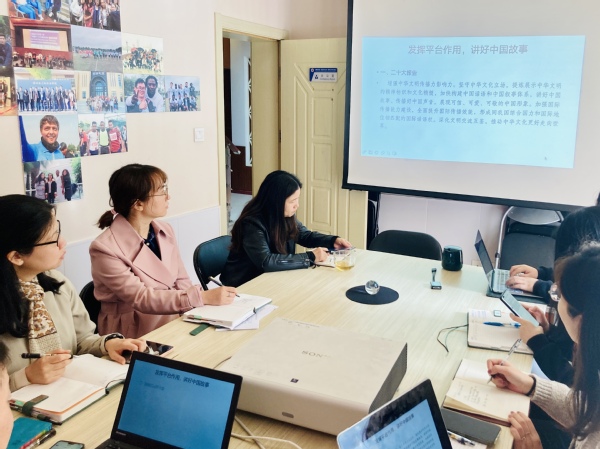 11月28日上午,国际交流处(港澳台办公室)党支部开展学习贯彻党的二十大精神专题党课,由党支部书记欧阳美和主讲,支部全体党员和入党积极分子参加。