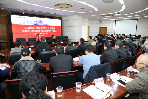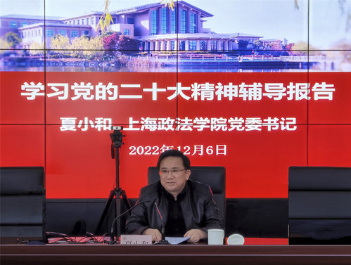 12月6日下午,新利18官方客服党委学习贯彻党的二十大精神宣讲团团长、校党委书记夏小和在求实楼513视频会议室为学校全体中层干部作题为“认真学习贯彻党的二十大精神 培养担当民族复兴大任的时代新人”专题辅导报告。马克思主义学院教师和党委组织部全体党员参加学习。校党委常委、组织部统战部部长王静主持报告会。