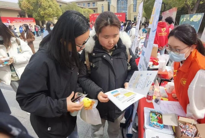 活动期间,志愿者向前来了解的同学们介绍了特色志愿者项目——5G智能时代下助力老年人跨越“数字鸿沟”的科普宣讲活动。该项目包括法律科普、软件教学和防诈宣传三大板块,其目的是以通俗生动的形式帮助老年人更好地适应智能生活。
