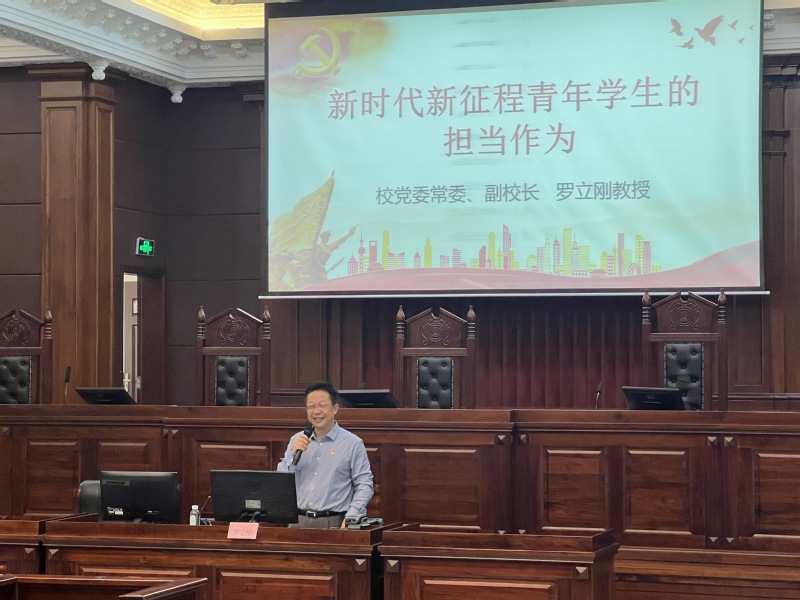 校党委常委、副院长罗立刚为学员讲授第二节专题党课“新时代新征程青年学生的担当作为”,围绕“深刻领会担当作为的重大意义和现实要求”“‘第二个百年’背景下,青年如何担当作为”和“作为政法学院的学生,应如何为国家作出贡献”三个方面内容进行了深入解读。(赖洁珊 撰稿、摄影)