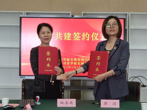 为深入开展主题教育,加强基层党组织建设,不断提升基层党组织组织力和影响力,5月19日下午,刑事司法学院纪检监察学院党总支赴上海农林职业技术学院,与生物医药健康系党总支举行共建签约仪式。签约仪式在综合楼第四会议室举行,生药系主任卢洪秀、刑事司法学院纪检监察学院党总支书记姚善英、副书记张丽艳、青年教师王园、团委书记盛思涵、上政第18支部党支部书记裘欣璐参加。会议由生药系党总支书记蒋洁主持。