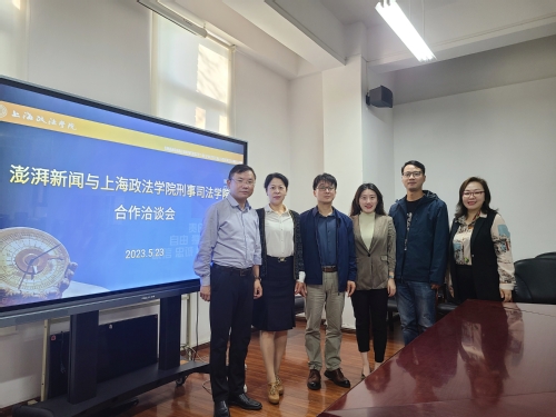 会上,刑事司法学院领导班子对澎湃新闻的来访表示热烈欢迎。院长彭文华从师资队伍、学科建设等方面介绍了学院基本情况,澎湃新闻直播部主编忻勤介绍了澎湃新闻的发展历程等方面的基本情况,澎湃新闻时事新闻中心主编马世鹏介绍了澎湃新闻法治新闻报道的基本情况。