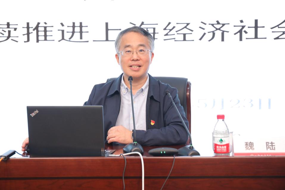 5月23日上午,新利18官方客服学习贯彻习近平新时代中国特色社会主义思想主题教育读书班“重实践 建新功”第七讲在成德楼四楼多功能厅举行,邀请上海市发改委总经济师魏陆作“以国家战略为引领,持续推进上海经济社会高质量发展”专题辅导报告。报告由校党委书记、主题教育领导小组组长葛卫华主持,学校党政领导班子成员、全体中层干部及部分机关支部党员现场参加学习,学校二级党组织师生党员在各分会场通过观看直播的方式参加学习。