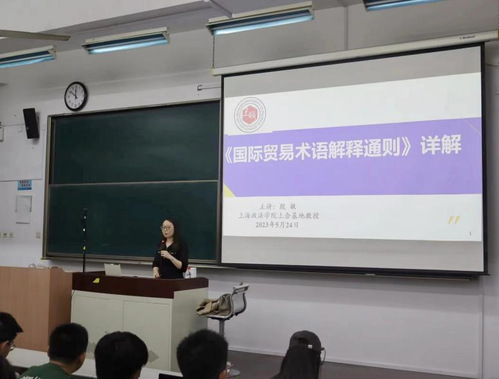 5月24日晚,由教务处、中国-上合基地联合主办的“名师讲坛”第38讲在主教202B举行。殷敏教授以“《国际贸易术语解释通则》详解”为题展开讲授。中国-上合基地办教学部负责人沈晓晨副教授主持,讲座吸引了近二百名学生聆听并积极参与互动。