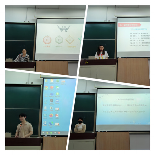 车晓亮告诉同学们要有考研的决心并要持续发力,注重情绪调节;金怡宁分享了自己的“无痛考研”经历,推荐了各个高校的研究生夏令营项目,并针对英语、政治两项科目给同学推荐了学习途径;孙舜安结合自己的求职经验,对简历的投递渠道选择、暑期实习单位的选择、进入面试提问环节后的技巧给出了自己的由衷之言;李兴宇就出国留学与考研的对比,针对语言考试、绩点等方面进行了详细介绍;吴佳仪建议择校时要多考虑所选择学校的信息与自身情况的匹配度。