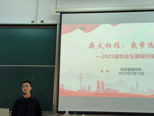 政府管理学院分团委书记董新万首先对本次受邀参与分享会的毕业生表示感谢和祝贺,介绍了本次分享会的活动背景,更好地为同学们办实事,并希望参会同学能够有所启发和收获,确立自己清晰的升学和就业目标。