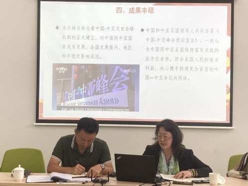 5月31日上午,中国-上合基地办公室召开主题教育专题学习座谈会,主题为“学习习近平主席在中国-中亚峰会上的主旨讲话精神”。中国-上合基地办党总支专职副书记王晓宇对习近平主席主旨讲话进行导读,中国-上合基地办副主任张少英主持座谈会,全体教职工参加会议。