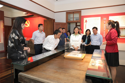 为传承红色基因,赓续红色血脉,不断增强对党的创新理论的政治认同、思想认同、理论认同和情感认同,推进学习贯彻习近平新时代中国特色社会主义思想主题教育走深走实,6月6日下午,校党委书记、主题教育领导小组组长葛卫华,校党委副书记、校长刘晓红带队前往《共产党宣言》展示馆(陈望道旧居),开展党委中心组扩大学习会暨“读书班+”沉浸式研学活动,重温“真理的味道”,触摸信仰的力量。复旦大学党委副书记尹冬梅在展示馆接待并陪同参观,学校党委理论学习中心组成员和中层干部代表参加学习。