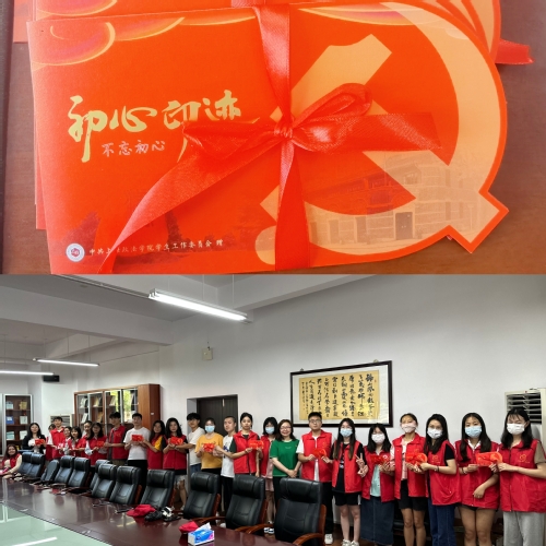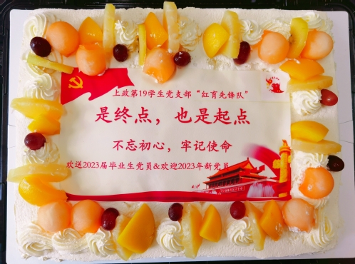 在毕业生党员欢送会上,支部准备了三个环节,一是“传承”,毕业生党员将写有党员精神寄语的“接力棒”传递给新发展党员,寓意党员精神代代传,传递美好期许与希望;二是“祝福”,在校党员为毕业生党员送上“初心·印迹卡”,并将祝福语附在卡内,希望毕业生党员能带着学弟学妹们的美好祝愿,顺利开启下一段人生;三是“宣誓”,党员重温入党誓词,一字一句将牢记于心,不负使命,不忘初心。最后,支部将特别定制的蛋糕给大家分享,祝福支部党员学业、事业、生活都能节节高。
