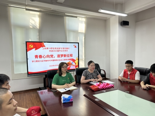 为强化毕业生党员的使命感和责任感,激励毕业生党员坚定理想信念,发挥先锋模范作用,6月9日,上政第19学生党支部全体毕业生党员、预备党员在B3-101开展以“青春心向党,逐梦新征程”为主题的毕业生党员离校教育活动。刑事司法学院党总支副书记张丽艳出席,党支部书记张常钰主持。
