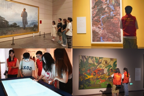 在支部书记裘欣璐的带领下,同学们集体参观了中华艺术宫“开天辟地——中华创世神话文艺创作与文化传播工程成果展”“十年·海上风华——庆祝党的二十大胜利召开上海美术作品展”。党员和积极分子在活动中感悟了中华文化源远流长、博大精深的魅力,体会到了美学教育浸润人心、升华精神的作用。(魏鸥撰稿 刘锋、严正宇供图)