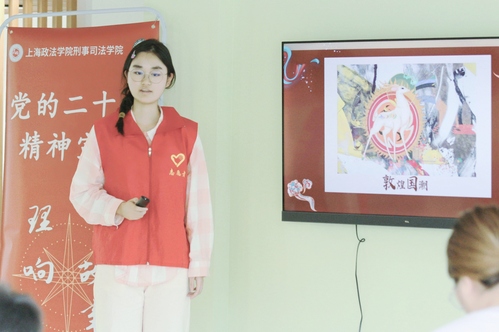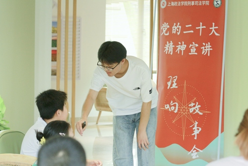 近日,刑事司法学院理论宣讲队指导老师、辅导员裘欣璐带领“行·思”党员理论宣讲队赴佘山镇幸福魔方党群服务站进行宣讲。心中有理想,青年让理“响”,面对社区青少年,宣讲队成员用“青”言“青”语,将党的二十大精神传递到邻里,将理论用故事的形式输送到听众心里。