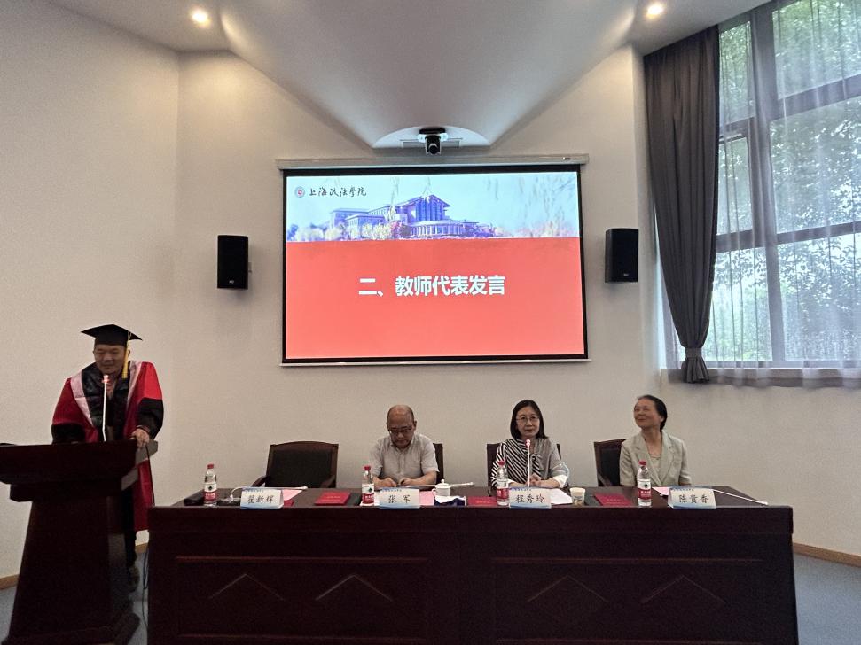 法律学院副教授翟新辉作为教师代表发言,对所有毕业的同学表示热烈祝贺,并围绕“眼界”“求实”“善念”这三个关键词,对已经在工作岗位上的毕业学子提出了建议,希望同学们继续保持学习的热情,不断保持进步,将钻研的精神持续下去。