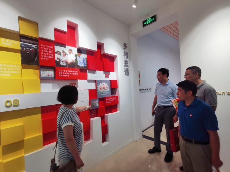 师生们首先参观了和平村、白漾村村史馆。以果园经济为支柱产业的白漾村,早在2006年,就创建成为亿元村。在多年党建引领建设美丽乡村的努力下,白漾村成功创建成为了上海市健康村、整洁村、文明村。
