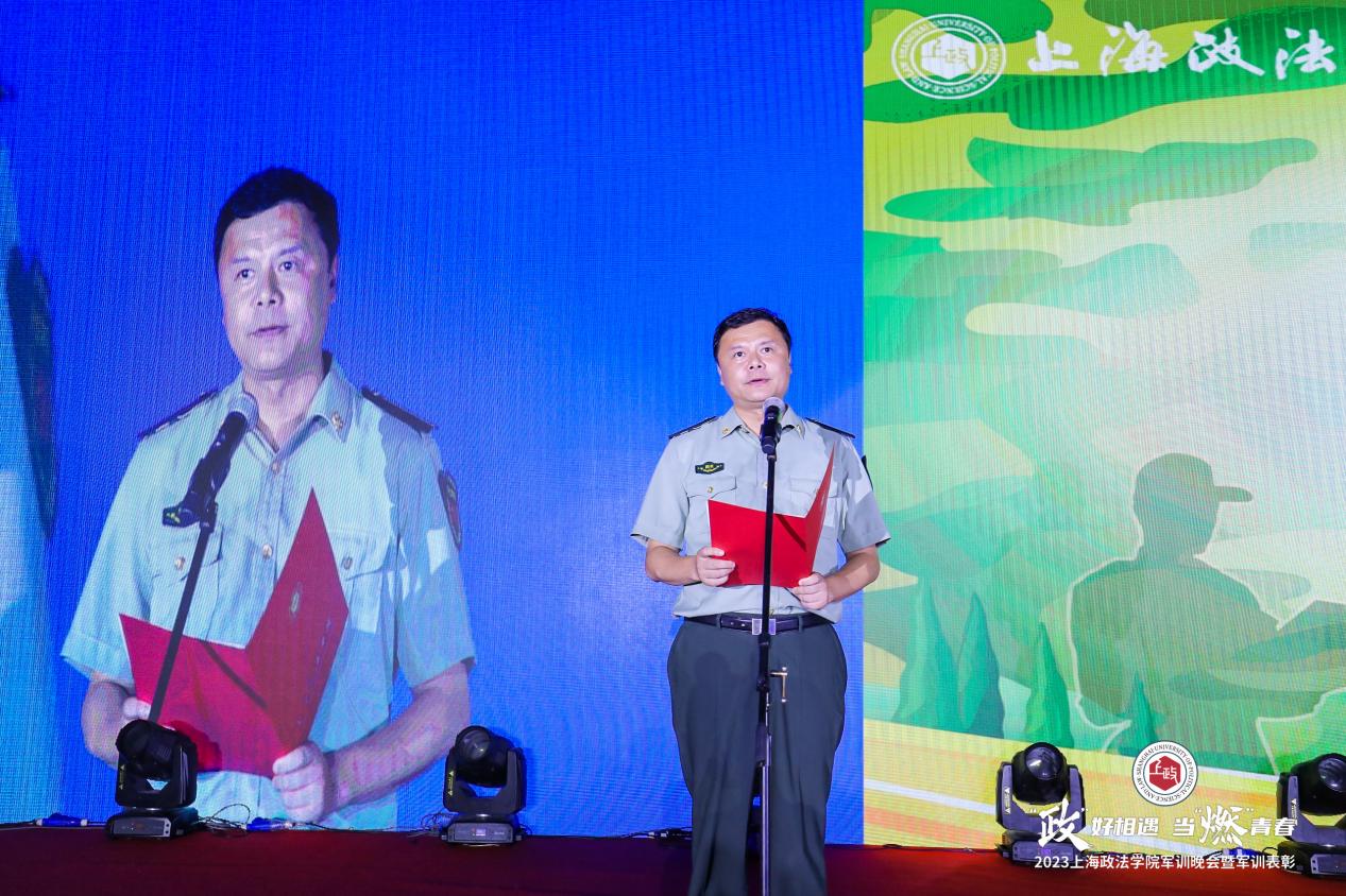 在表彰环节,现场揭晓了本次军训各类集体及个人荣誉。校党委副书记、军训团团长刘刚为承训部队颁授锦旗,承训部队领导和与会嘉宾为相关集体和个人颁发奖项。