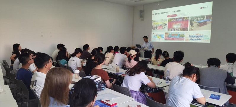 中国银行上海市分行对2024届毕业生招聘岗位进行宣讲,经济管理学院中行金融班学员参与其中,这是中行金融班成立以来举行的第一次大型专场招聘宣讲会。自中国银行上海市分行与我校进行校企合作以来,为促进订单式培养和就业,已多次举办促就业相关活动,现场多名学生投递简历,表达应聘意向。