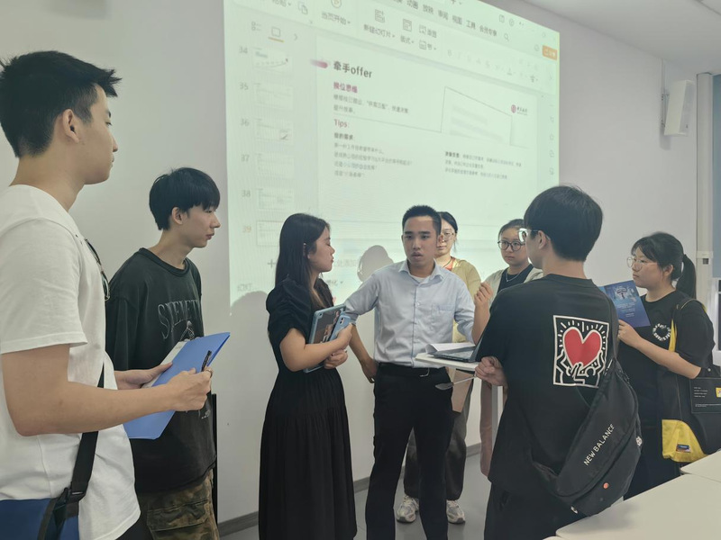 互动环节,宣讲人与我校学生进行了热情的问答互动,并安排了抽奖环节,现场气氛活跃。活动最后,面试官们对到场投递简历的同学进行了现场面试。