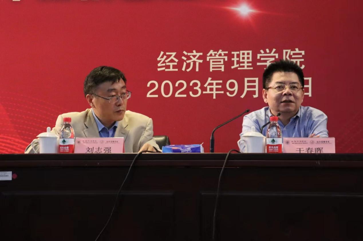 为进一步帮助新生适应大学生活,引导新生明确大学阶段的学习目标,提升大学生的学科素养,加强学风建设,9月26日下午,经济管理学院在博雅馆开展新生第一课讲座,邀请上海社会科学院副院长干春晖教授主讲,全体2023级新生参加讲座。讲座由经济管理学院院长刘志强教授主持。