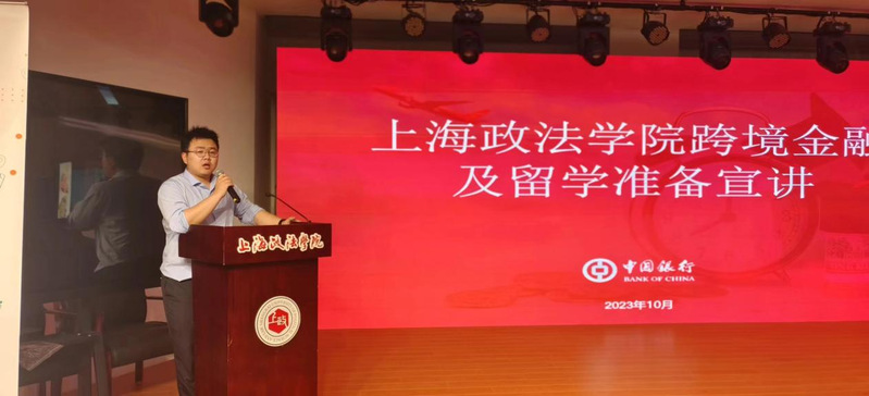 张嘉晔向同学们科普了留学期间的金融安全、金融便利方面知识,提醒同学们重视跨境汇款安全,结合自身情况选择安全的金融服务。