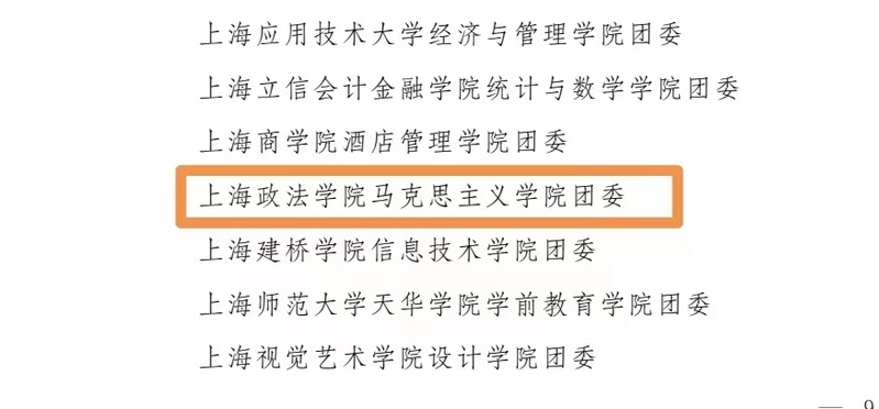 近日,为表扬先进、树立典型,持续激发高校、高中阶段学校基层团组织、社团、团干部活力,共青团上海市委员会、上海市教育委员会决定表扬2023年上海高校、高中阶段学校活力团组织、活力社团,团干部示范典例,并授予荣誉称号。在此次示范典例表扬中,我校马克思主义学院团委荣获“2023年上海高校活力团委”称号,学院21201团支部荣获“2023年上海高校活力团支部”称号。