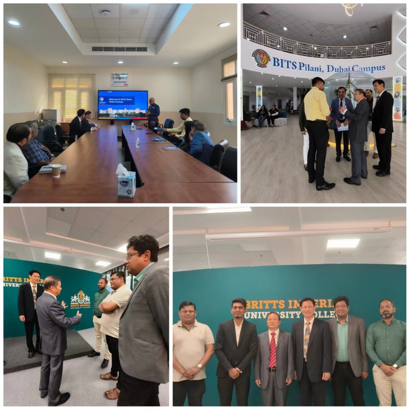 在阿联酋,欧阳美和一行首先与比尔拉理工大学迪拜校区校长、资深教授Dr. Srinivasan Madapusi、研究生院院长M.B Srinivas Ph.D、国际事务负责人Dr. Vincent Shantha Kumar等校方人员进行了会晤。双方各自介绍了学校发展特色和国际学生招生项目,并就人文学科长短期项目、交换生学分互认等项目的合作进行了深入探讨,初步达成签署合作备忘意向。双方一致表示,未来可以通过联合培养、联合科研等方式,加强专业领域的人才交流与合作。其次,我校代表团访问了布里茨帝国大学学院,与该校首席执行官Santhosh Krishnan、校长助理Dr. Sujith Jayaprakash等校方人员座谈。欧阳美和介绍了我校办学情况和国际学生招生项目,对方对我校人工智能法学院和经济管理学院相关专业显示出浓厚兴趣,并期待未来就相关专业的学历项目、交换生学分互认项目等展开合作。