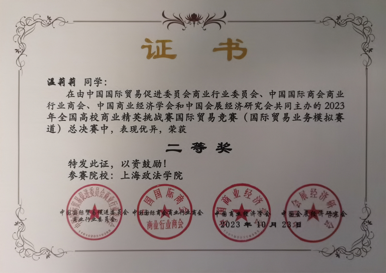 近日,2023年第十三届全国高校商业精英挑战赛国际贸易竞赛(国际贸易业务模拟赛道)圆满落幕。竞赛中,经管学子表现出了强烈的团队合作精神,充分发挥自身专业知识和技能,成功应对了各种挑战,有两支队伍获得奖项。