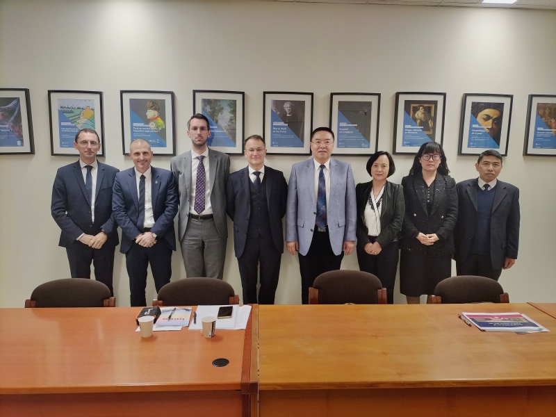 在随后举行的座谈中,潘牧天介绍了学校基本情况、主要办学特色、国际化办学以及留学生招生培养情况。旺代天主教大学法律与经济学院院长Eric Pomès、国际交流处处长Matthieu Grandpierron介绍了旺代天主教大学的基本情况和有关国际学生培养项目。双方就学生交换、教师交流等进行了深入讨论。旺代大区工商部门顾问Guillaume Delgado介绍了当地经济发展情况、校企合作培养人才,以及法国企业对进入中国市场的重视与愿望。潘牧天向对方介绍了我校与行业企业深度合作培养应用型人才的情况,以及依托中国-上合司法培训基地开展“一带一路”国际经济贸易等领域的研究,为企业走出去和引进来提供法律咨询服务等情况。双方表示可以就此加强进一步研讨,为中法企业搭建交流合作平台。