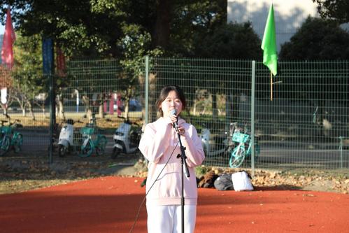 升旗仪式后,主持人宋可心同学介绍了我校坚持“立足政法、服务上海、面向全国、放眼世界”的办学理念与秉承“刻苦求实、开拓创新”的校训精神,马克思主义学院思政23201班金佳璐同学作了国旗下发言。