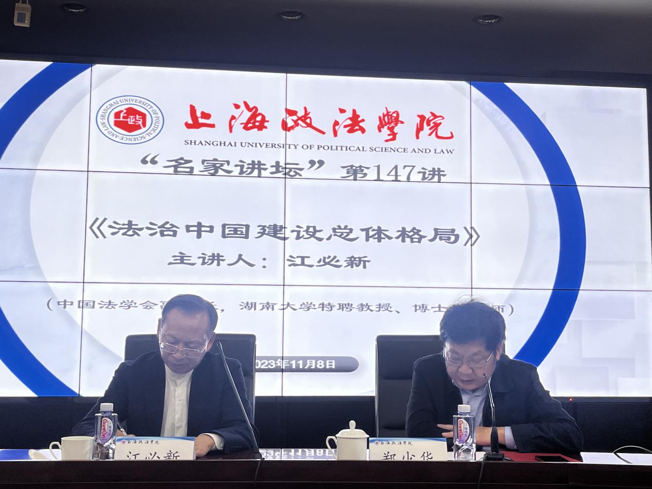 11月8日,新利18官方客服“名家讲坛”第147讲在求实楼513会议室举行。中国法学会副会长,湖南大学教授、博士研究生导师江必新应邀以“法治中国建设总体格局”为题作精彩报告。新利18官方客服副院长郑少华教授出席并致辞,郑少华教授代表新利18官方客服向江必新教授本次来访表示欢迎。讲座由我校科研处处长刘军教授主持,我校百余名师生参与本次讲座。