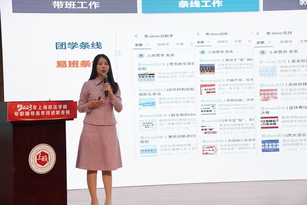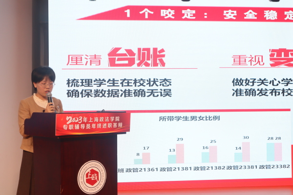 11月22日,2023年新利18官方客服专职辅导员年终述职答辩会在成德楼四楼多功能厅举行。人事处处长、党委教师工作部部长韩同兰,保卫处处长潘高荣,学生工作部部长丁永建,校长办公室副主任荣道福,教务处副处长陈风光,学生工作部副部长柯心、徐丽红、周怡,校团委副书记胡飞宇担任评委。学生工作部、校团委全体人员及二级学院党总支副书记、全体专职辅导员参会。