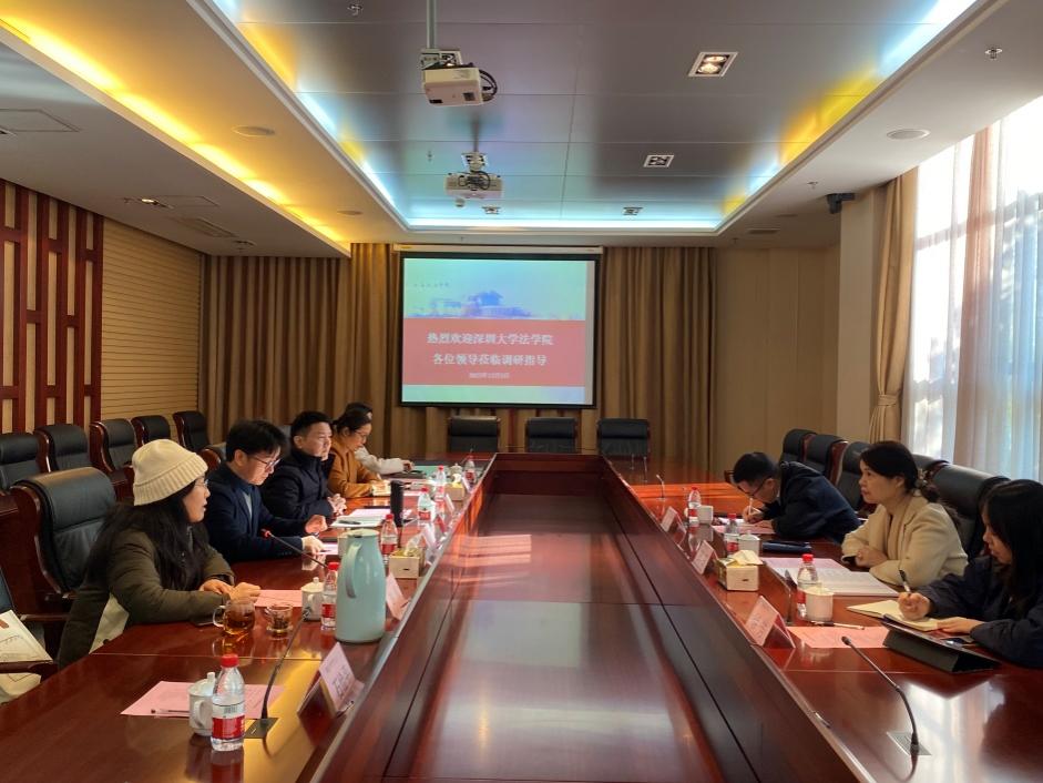 12月5日上午,深圳大学法学院副院长周卫一行3人来我校调研交流。刑事司法学院院长彭文华、图书馆馆长赵俊、研究生处副处长卫磊、国际法学院副院长石俭平等相关部门负责人参加调研。调研座谈会由赵俊主持。