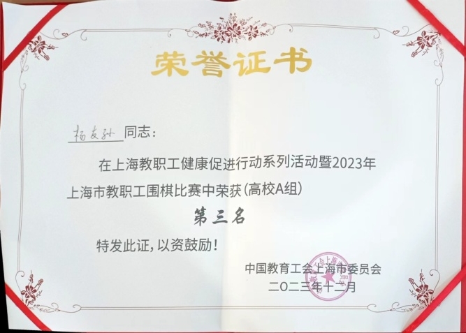 我校彭文华、杨友孙老师代表学校参加本次赛事。经过为期两天9轮的激烈比拼,杨友孙老师取得7胜2负的佳绩,与第二名战绩相同小分屈居第三,荣获高校A组第三名,彰显了我校教职工队伍勇毅前行的形象和积极进取的精神风貌。